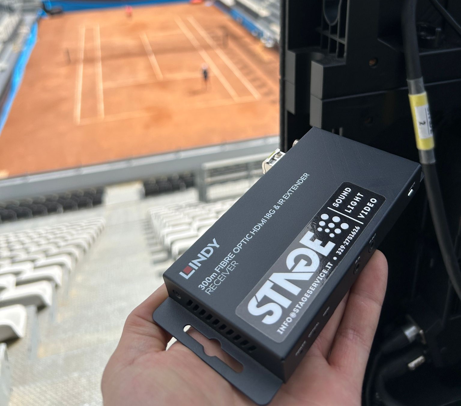 Die Lindy-Extender-Lösung ermöglichte eine stabile 4K-Signalübertragung über 250 m Glasfaser und verband den externen Regieraum mit zwei synchronisierten LED-Wänden (je 6 m × 3,5 m). Während des Internazionali BNL d’Italia lieferte das System durchgehend einwandfreie, unterbrechungsfreie Bilder an mehr als 10.500 Zuschauer in der Grand Stand Arena. Trotz der hohen Anforderungen eines internationalen Live-Turniers arbeitete die temporäre Installation absolut zuverlässig – und sorgte dafür, dass jeder Fan ein nahtloses Seherlebnis genießen konnte.