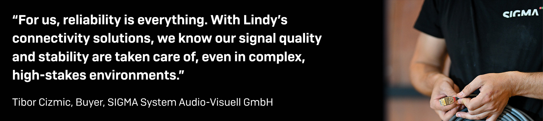 Since every project is bespoke and event-based, SIGMA relies on reliable AV connectivity to guarantee stability and performance—needs that are met through Lindy’s premium connectivity products.