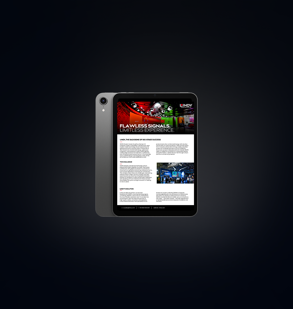 SIGMA peut ainsi intégrer facilement des équipements de pointe dans des infrastructures professionnelles. En utilisant les solutions premium de Lindy, SIGMA garantit des connexions stables et sécurisées. Ces connexions répondent — et dépassent souvent — les attentes élevées des marques internationales pour chaque installation sur mesure et événement en direct.